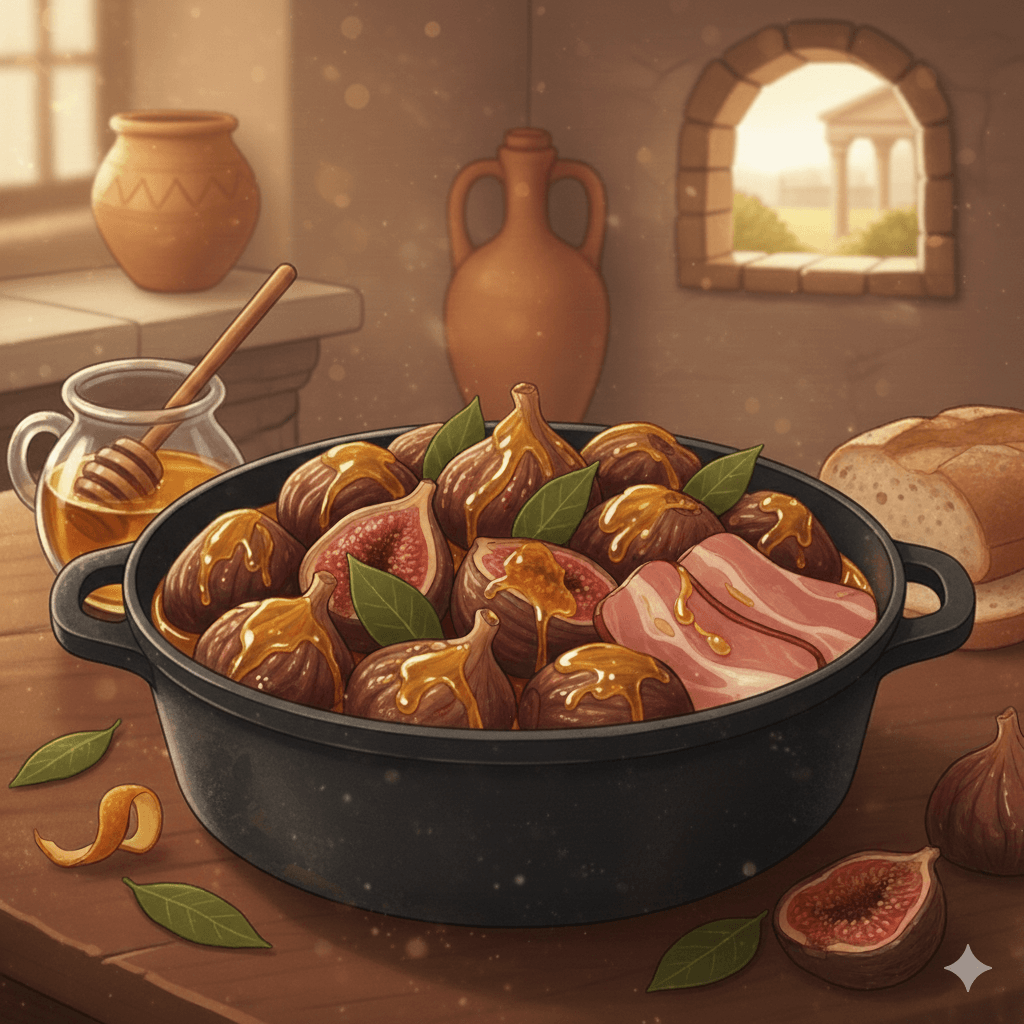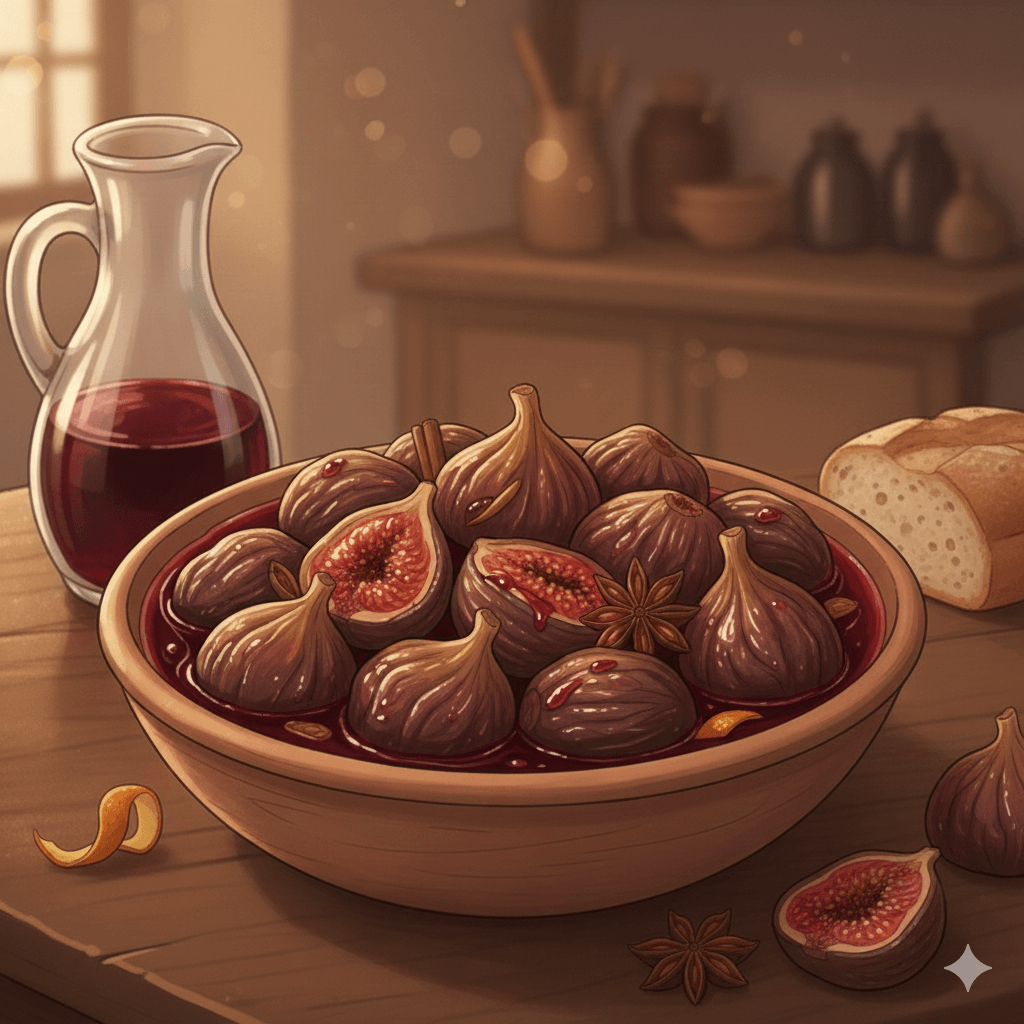 また、宴席ではデザートとして、乾燥いちじくをワインで煮こんだ料理がふるまわれた描写があります。