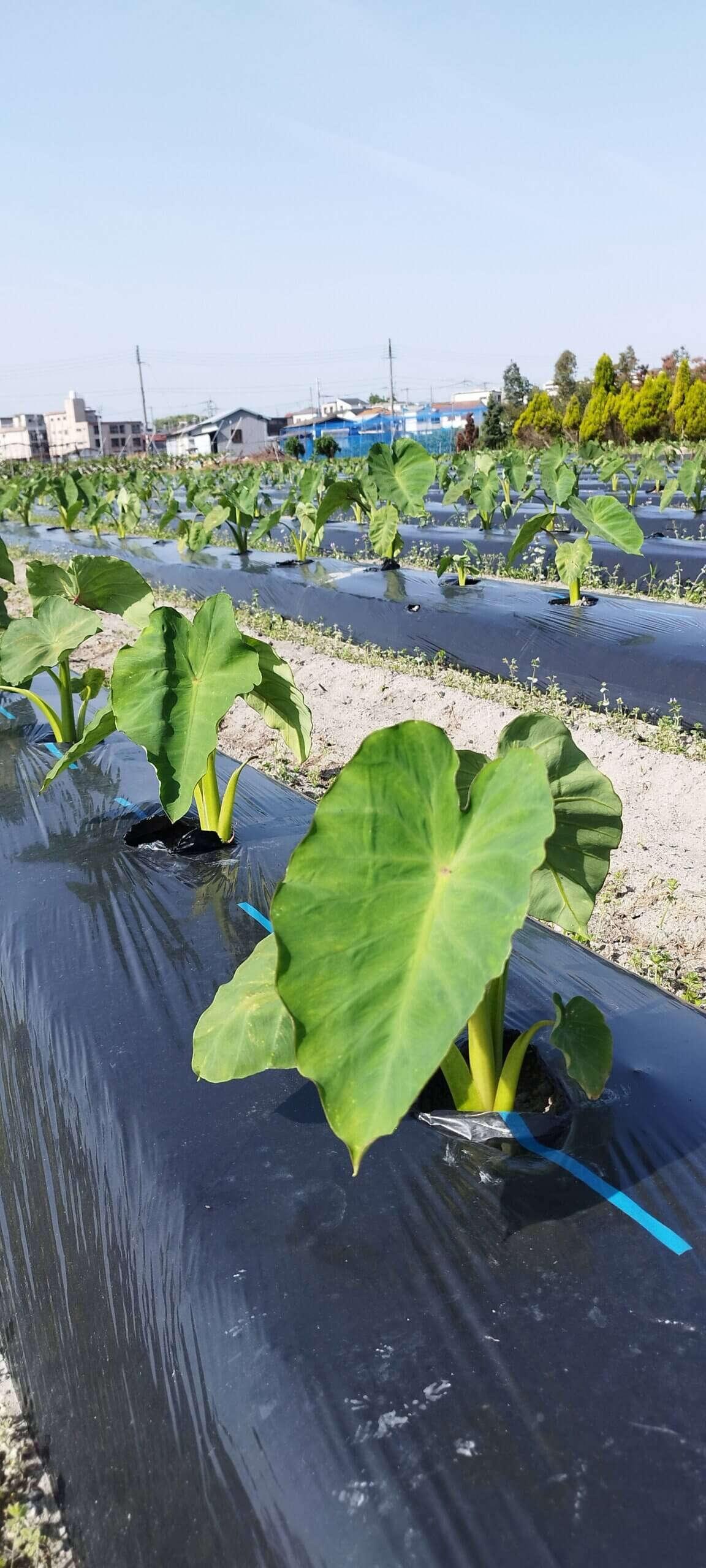 さといもは3月に播種し、じっくりと大きく育てて11~12月に収穫します。収穫まではまだまだ先が長いです。