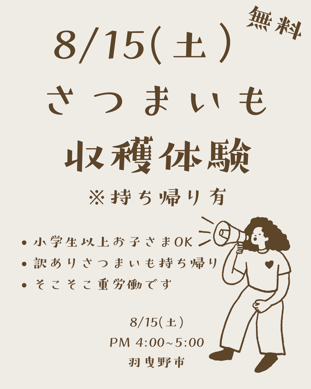 夏休みの思い出に、お芋掘りしませんか? …